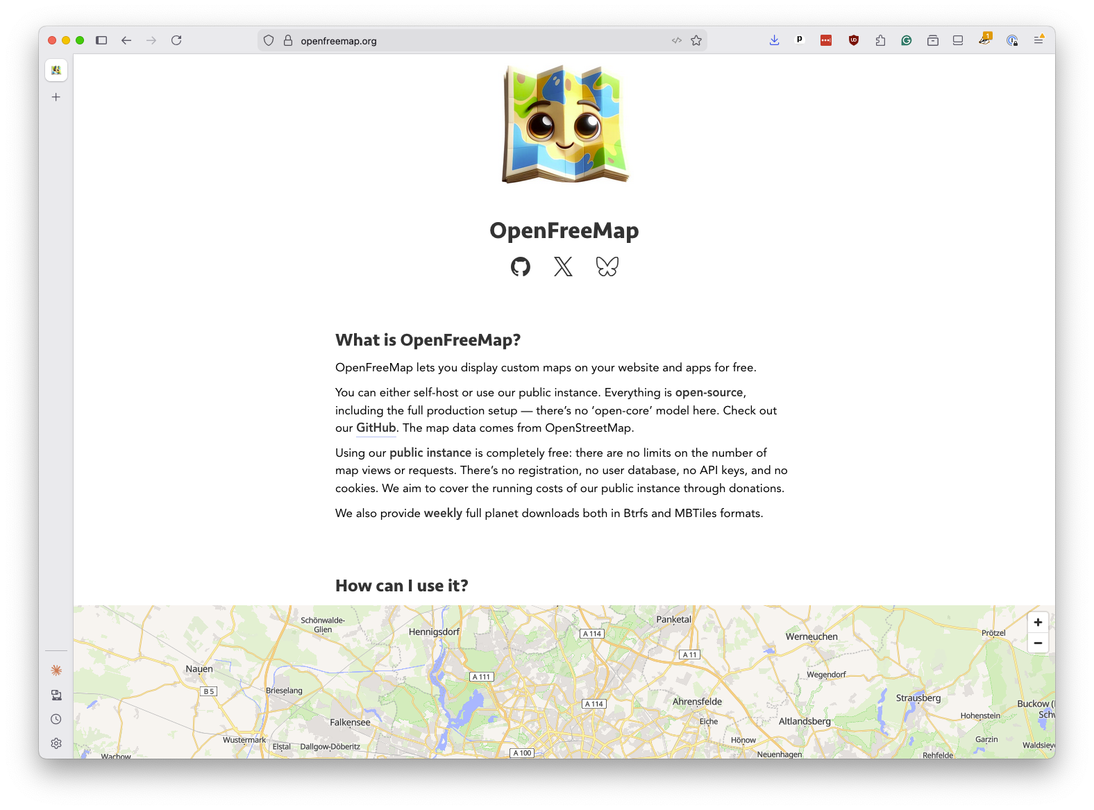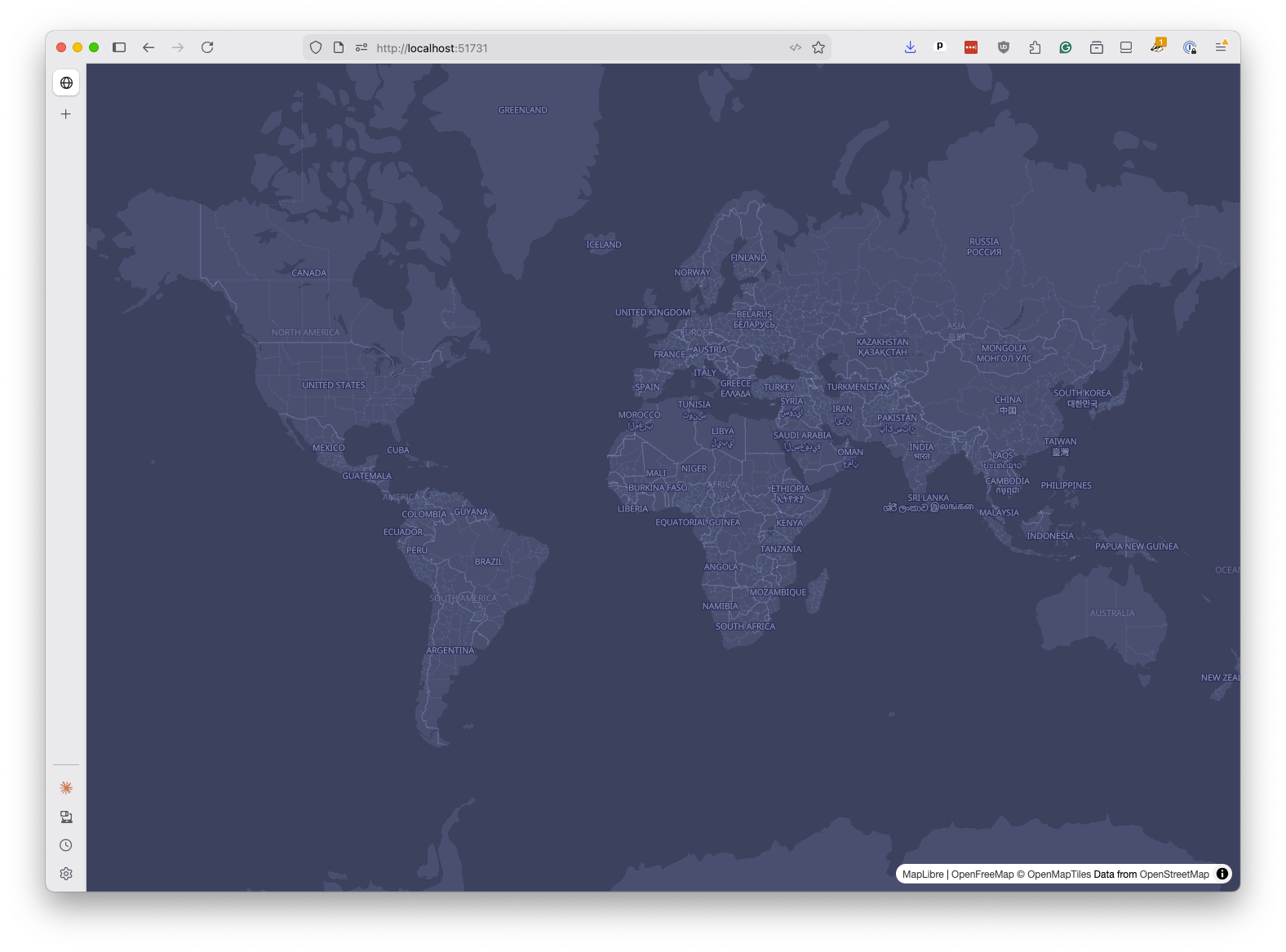 Visit http://localhost:8000 in your browser to verify it’s working. You should see the OpenFreeMap basemap, but no storm tracks yet.